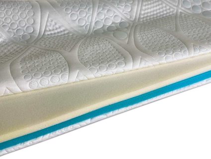 Материалы позволяют анатомически повторять контуры тела, легко подстраиваясь под фигуру человека и создавая оптимальный уровень комфорта. Сами материалы выполнены с вертикальной перфорацией, что делает этот топпер невероятно дышащим – а это отличный способ избежать образования пылевых клещей. Повышенный воздухообмен и высокий уровень циркуляции воздуха во время эксплуатации превращает этот тонкий матрас в прекрасный инструмент создания свежести во время сна на поверхности спального места.