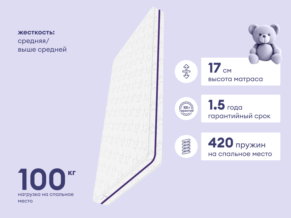 Базилик Бэби Фан – универсальный детский матрас с ортопедической поддержкой. Матрас оснащён независимым пружинным блоком и двумя сторонами разной жёсткости, что позволяет адаптировать его к возрасту и предпочтениям ребёнка. Благодаря качественным материалам, модель обеспечит комфортный и здоровый сон для детей любого возраста.