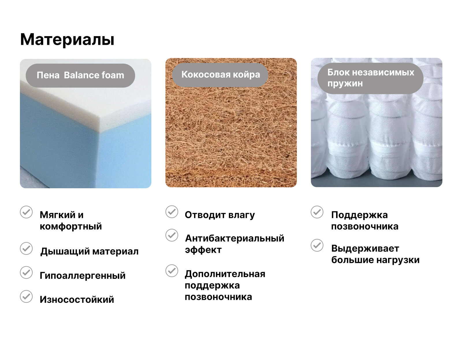 Для производства матраса используются только безопасные и гипоаллергенные материалы.