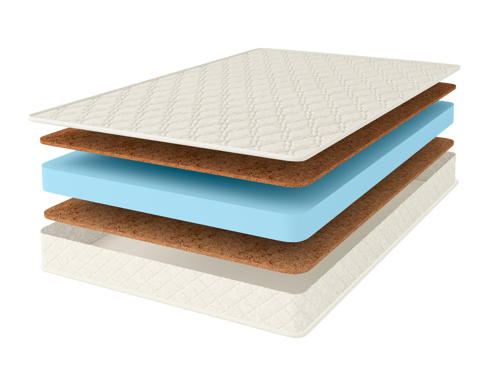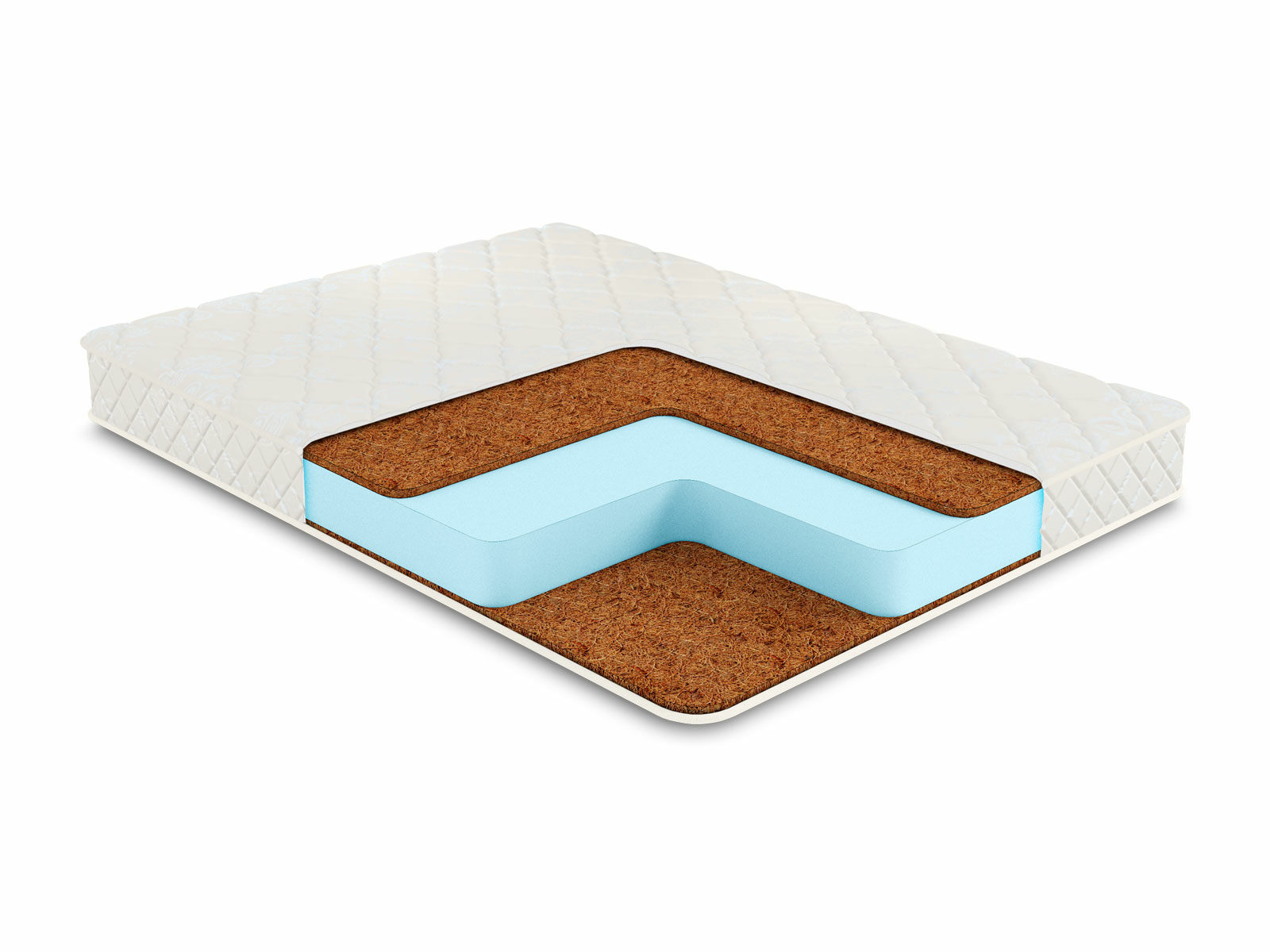 В центре модели установлен блок из умеренно мягкой пены. Сверху и снизу от неё проложены слои кокосовой койры. Если пена решает задачу по распределению нагрузки, а также амортизирует движения человека, то койра отвечает за удержание спины в анатомически правильном положении. Благодаря своей жёсткости и плотности койра даёт выраженную поддержку для позвоночника.