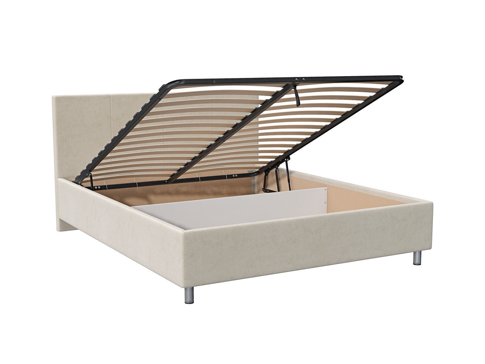 В комплектации с подъемным механизмом кровать имеет вместительный бельевой короб с двумя отделениями.