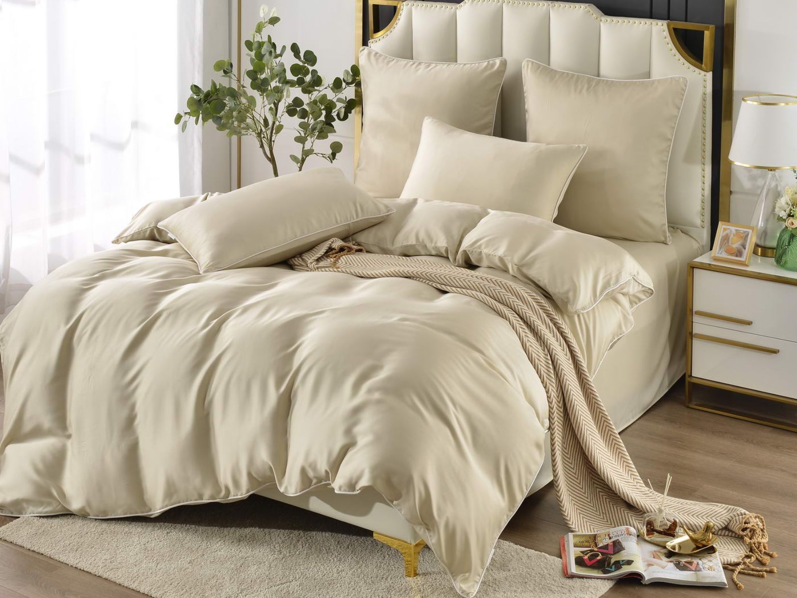Тенсел – это натуральная ткань из эвкалиптового волокна. На ощупь тенсел напоминает шелк – он такой же легкий и гладкий. Постельное бельё из такой ткани обладает хорошей терморегуляцией, поэтому его можно использовать в любое время года – не будет жарко или холодно. На данный момент, тенсел пользуется большой популярностью во всем мире.