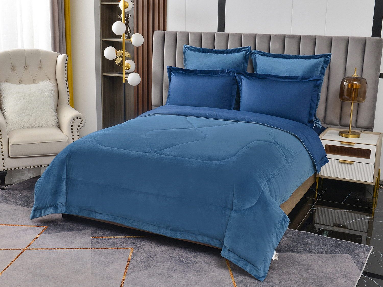 Изготовленный из качественной вискозы и мягкого хлопка трендовых цветов, комплект создаёт приятное ощущение на коже. Его экологичное наполнение из 100% эковолокна обеспечивает гипоаллергенные свойства, подарив вам спокойные и уютные ночи.