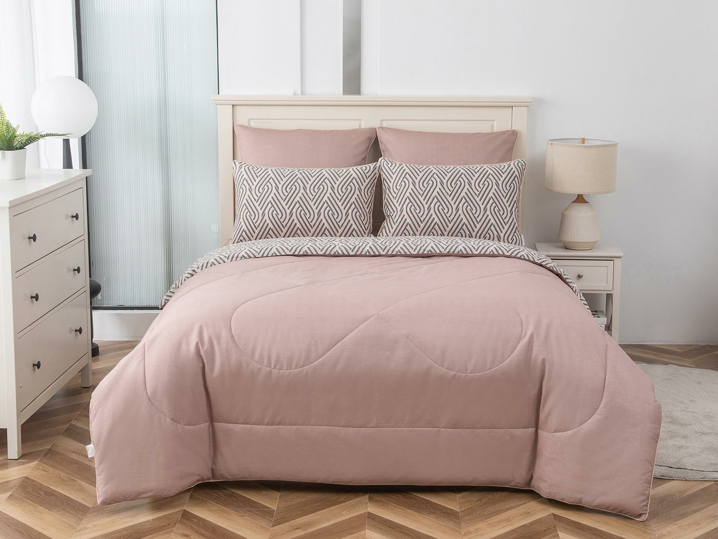 Особенность: двусторонняя модель, наволочки и одеяла декорированы кантом.
