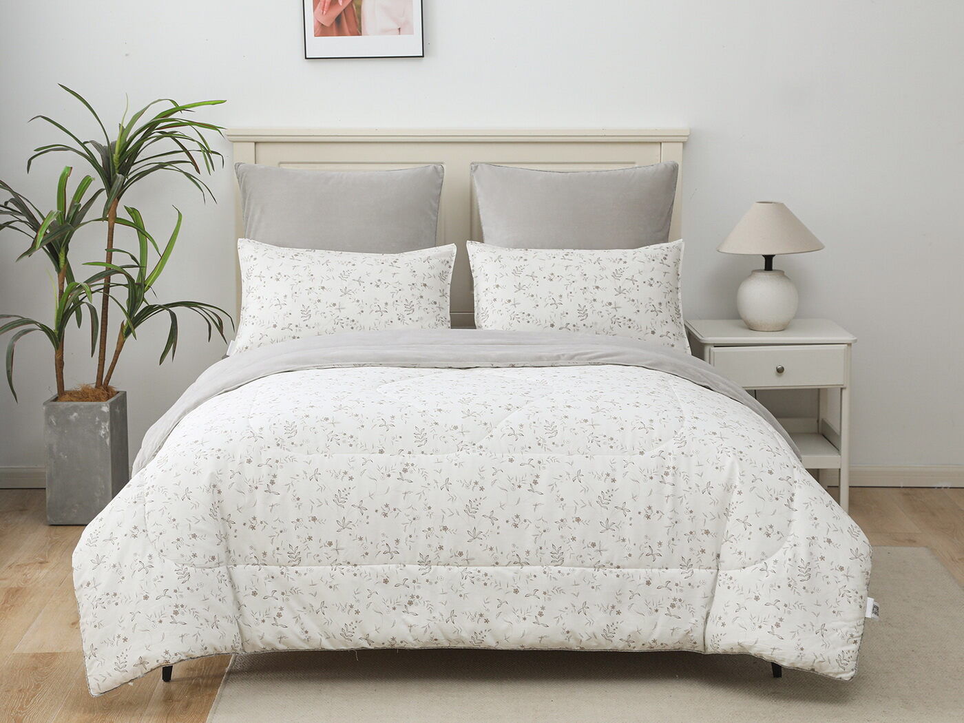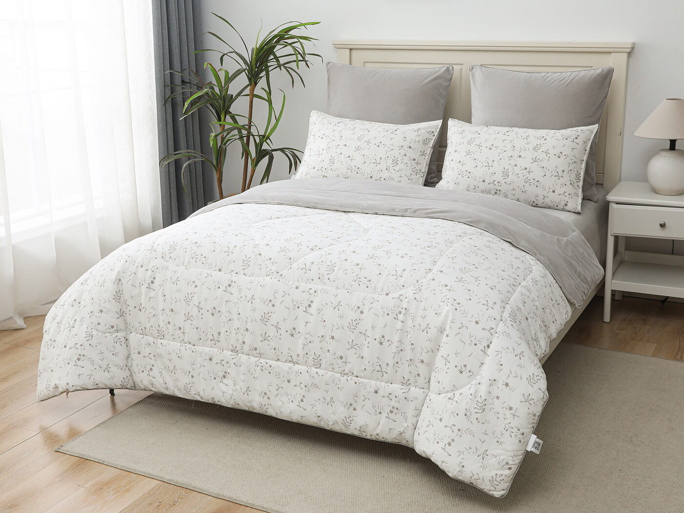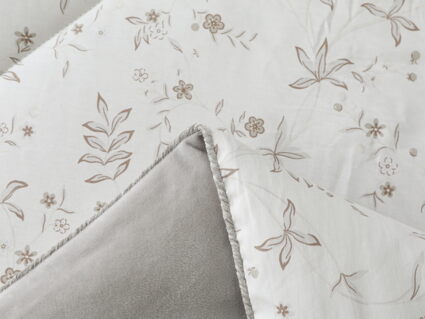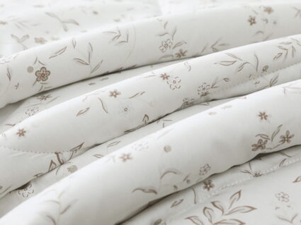 Обратная сторона одеяла – принтованный сатин натуральный хлопковый материал. На ощупь нежная и шелковистая, при этом комфортная и прочная ткань.