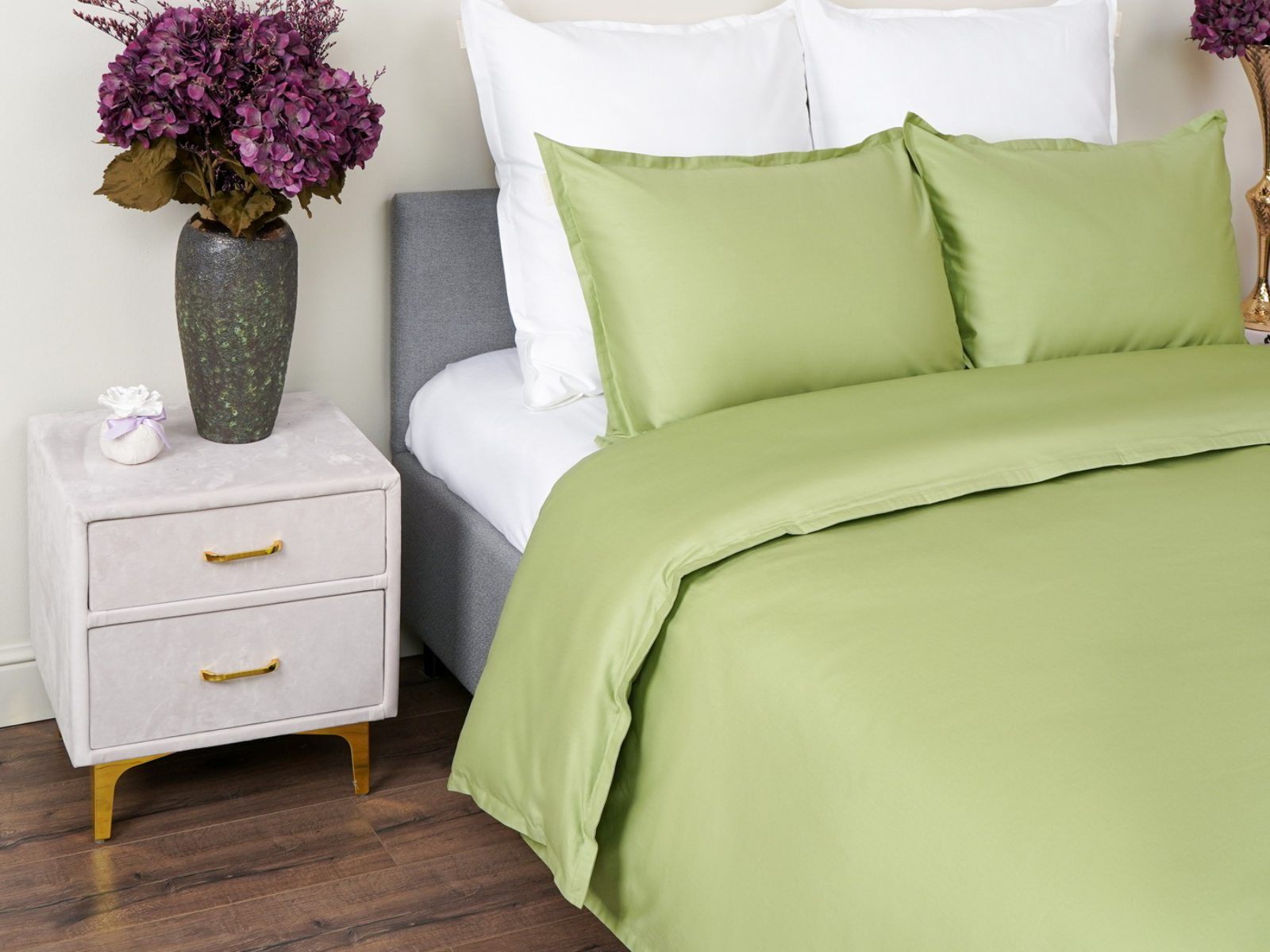 Особенность: наволочки и пододеяльник с ушками 2 см по периметру, пододеяльник на пуговицах;