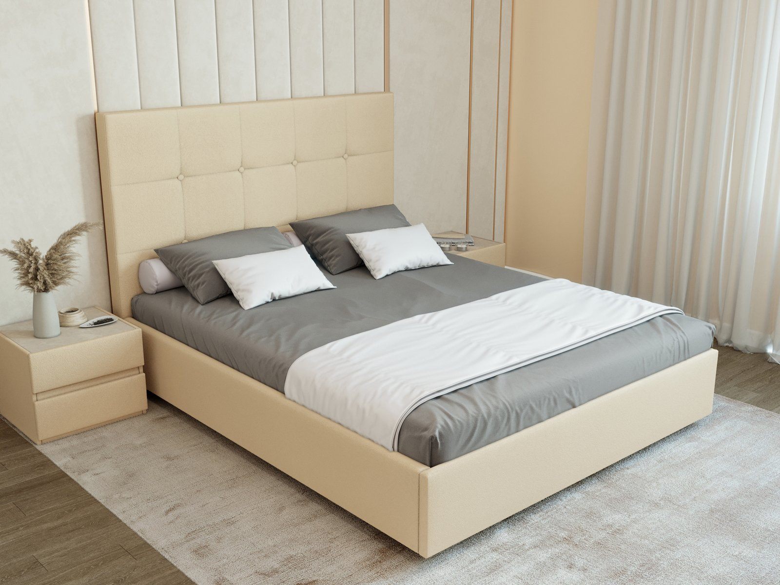 Кровать Норма выполнена в классическом дизайне. Элегантное изголовье с рисунком в виде квадратов и декоративными пуговицами гармонично дополнит большинство интерьеров.