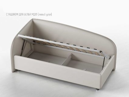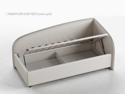 Одним движением руки Вы можете превратить кровать в диван! Закажите вместе с кроватью декоративный чехол на матрас к кровати Amelia из мебельной ткани (чехол приобретается отдельно, стоимость уточняйте у наших менеджеров), уберите постельное бельё в просторный ящик и вуаля — перед вами удобный и компактный угловой диван (особенно актуально для детских комнат или гостиных).