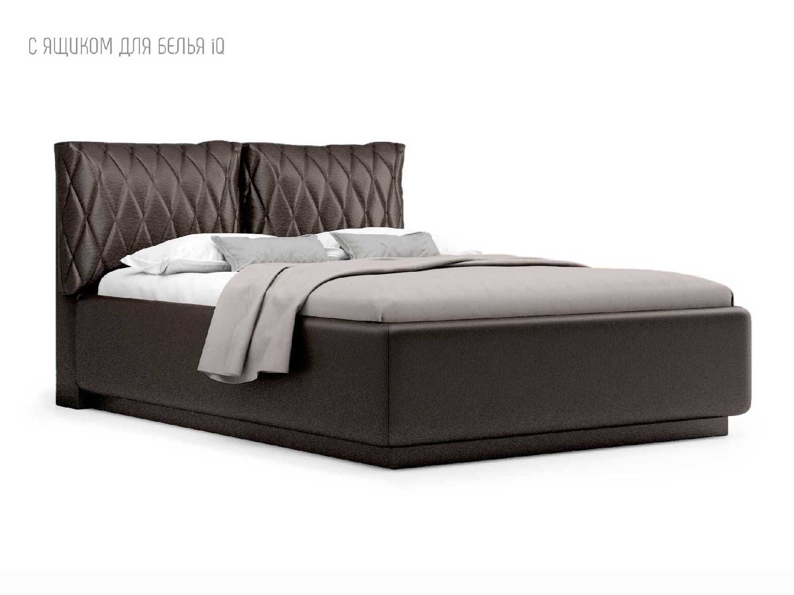 Кровать укомплектована IQ с подъемным механизмом и ящиком для белья без дна (дополнительная платная опция - дно к ящику IQ из HDF (ХДФ). Каркас кровати на цоколе, декоративный чехол на цоколе съёмный. Глубина ящика для белья - 30 см, без ограничения нагрузки на ящик.