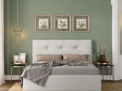 Интерьерная кровать Lauria (Лаурия) - нежность и уют вашей спальни. Мягкое и "пухлое" изголовье кровати оформлено в геометрическом стиле и разбито кантом, с неглубокими утяжками, на рисунок в виде прямоугольников — простое и одновременно стильное.