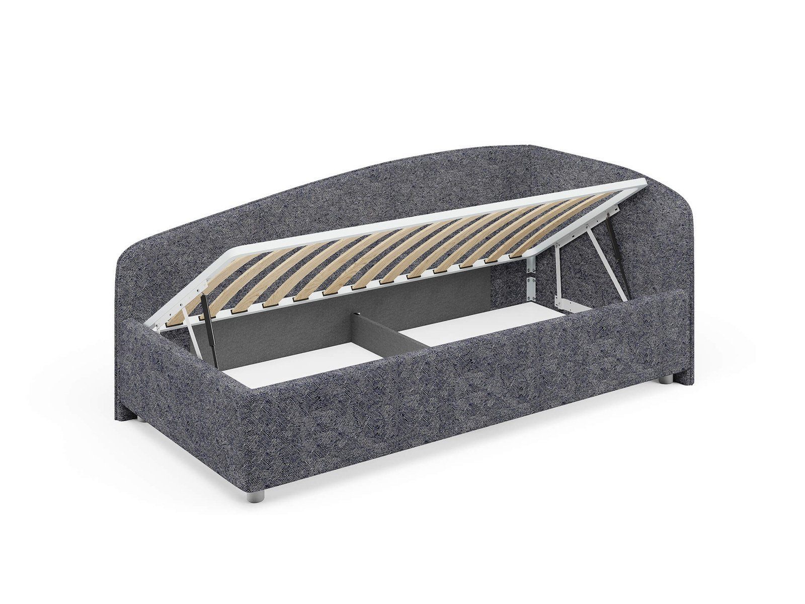Кровать комплектуется металлическим основанием и подъемным механизмом со вместительным бельевым ящиком. Дно бельевого ящика легко сдвигается для обеспечения уборки под кроватью.