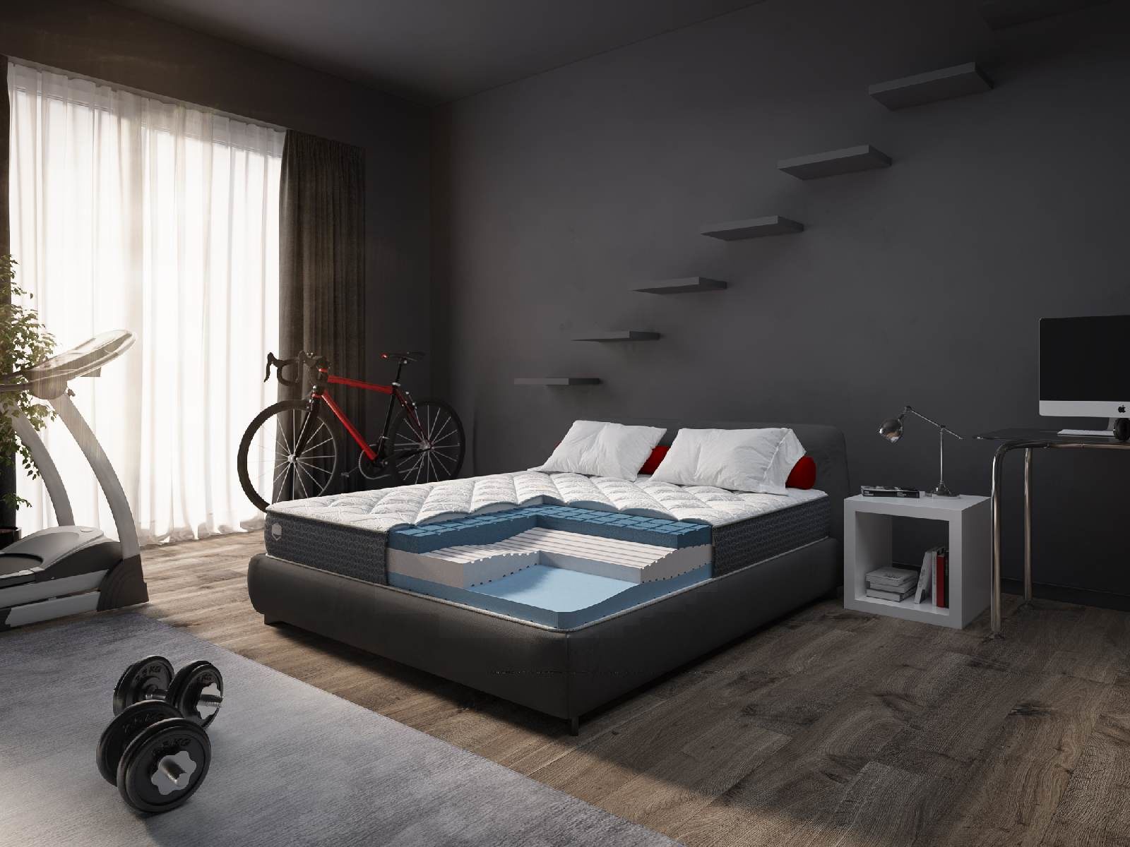 Atmosfera - элитный анатомический матрас со съемным чехлом, импортируемый из Италии . Одна сторона матраса - супер мягкая с эффектом терморегуляции (свежей постели). Не имеющая аналогов среди матрасов, представленных на Российском рынке. В основе сложная ортопедическая конструкция высотой 20 см, последнего поколения без свинца и формальдегидов! Современная запатентованная нарезка и конструкция обеспечивают прогрессивную поддержку и вентилируемость матраса. Съемный чехол отвечает за гигиену спального места и упрощает уход.