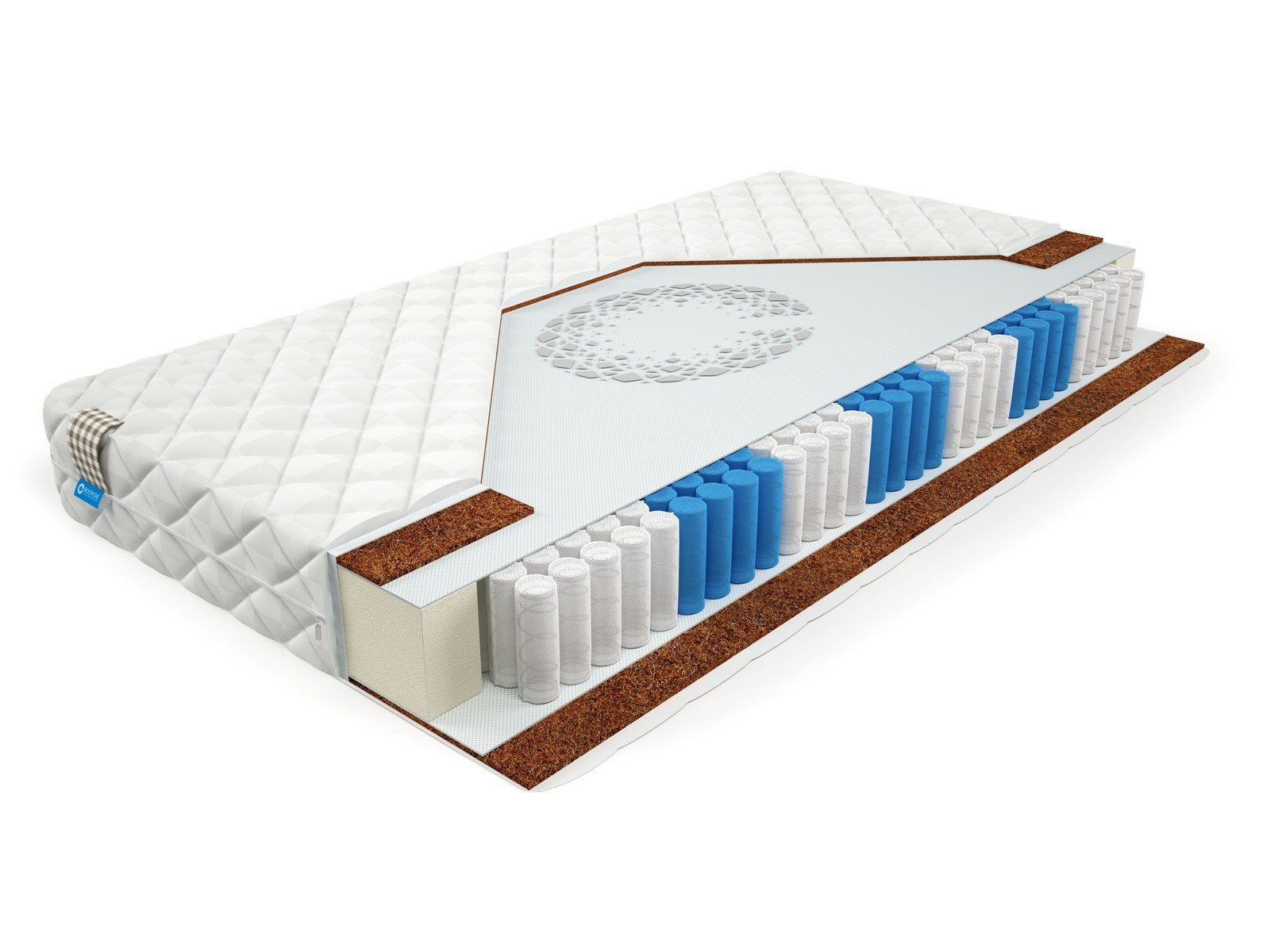 Кокосовое волокно получают, отделяя очес от кокосовой скорлупы. Из волокна изготавливаются маты, которые могут быть обработаны и латексом, и клеем либо полиэфирами, получая различные степени жесткости и эластичности. Маты могут быть также изготовлены иглопробивным способом для повышения вентилируемости и изоляции от шумов. Кокосовое волокно - стойкий, эластичный и одновременно прочный материал, используемый в матрасах, производимых нашей мастерской. Оно практически не портится. Волокно поддерживает оптимальную температуру и обладает звуковым и волновым поглощением..