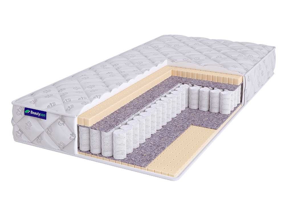 Матрас BeautyRoll Roll Spring Latex 3 S600 доставляется в вакуумной упаковке, что значительно упрощает его транспортировку. Модель двустороння и показывает выраженную мягкость с обеих спальных поверхностей – высокую и ниже среднего уровня жёсткости.