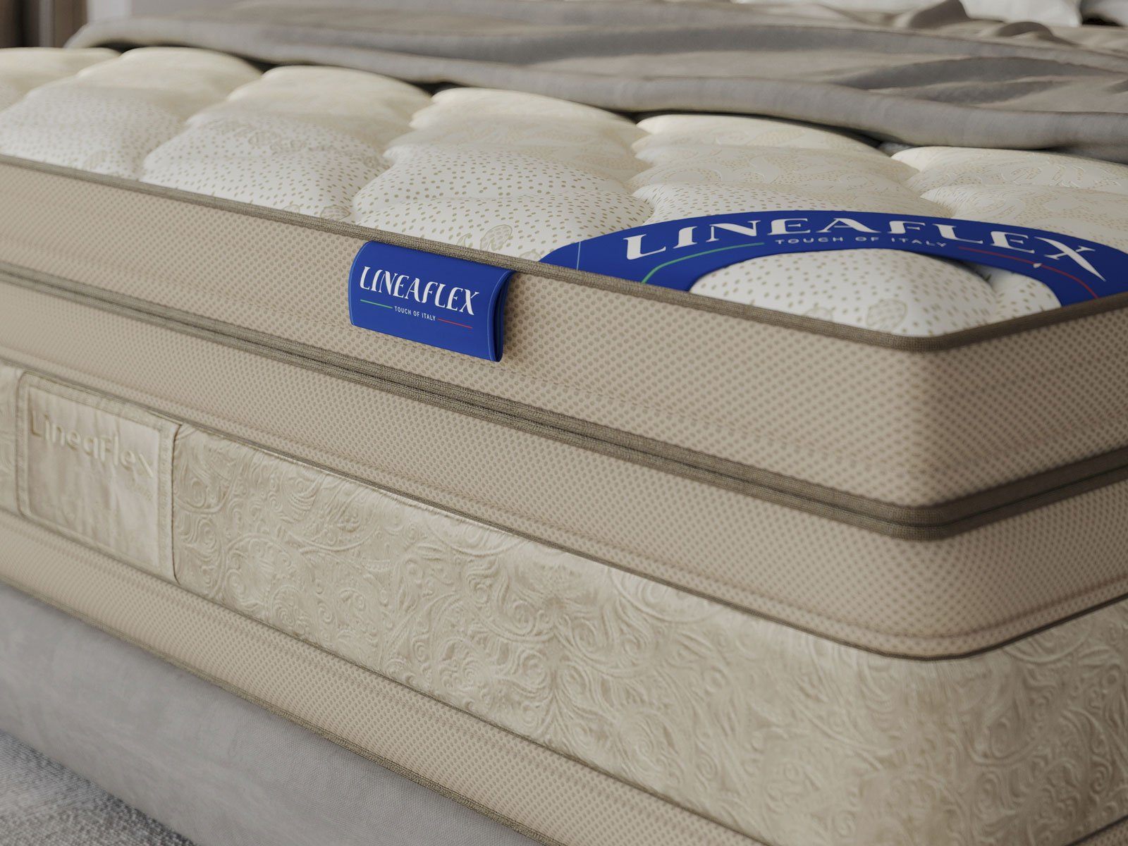 Обивка изготавливается из вискозной ткани с добавлением полиэстера для носкости, которую дополняет эксклюзивное наполнение стежки холлофайбером. Боковина матраса шьётся из 100% воздухопроницаемой ткани 3D SPACE.