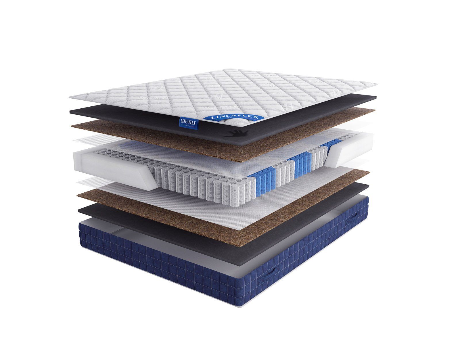 Из-за своей высокой мягкости Мемори очень редко используется соло. Чаще всего материал дополняется более плотным слоем с функцией удержания. Именно таким здесь выступает кокосовый наполнитель. Он берет на себя правильную поддержку спины и отвечает за здоровое положение позвоночника.