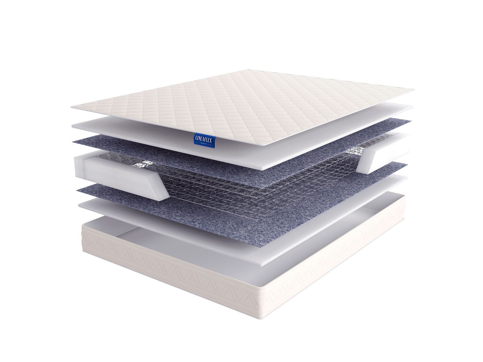 Чтобы человек не ощущал рельеф механизма и его работу по сторонам от пружин были установлены термовойлочные полотна высокой плотности, а также наполнитель пенополиуретан. В результате такого союза матрас обрёл среднюю жёсткость и сохранил симметрию. По этой причине даже перевернув изделие другой стороной, вы получите тот же уровень мягкости.