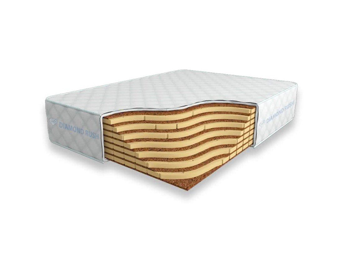 Матрас Diamond Rush Mono Mix Cocos 29 DR является беспружинным, т.е. не имеет в своей основе пружинного блока. В его состав входят одно или несколько чередований слоев латексированной кокосовой койры (1см) и натурального латекса с перфорацией (3см). Такая модель матраса относится к среднежестким и обладает ортопедическим эффектом.