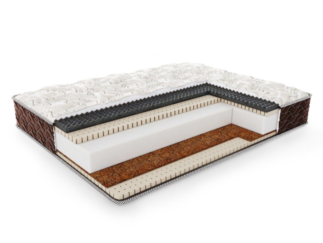 Вторая часть модели получила в своё распоряжение союз из латекса и койры кокоса. Здесь натуральная пена выступает в качестве смягчающего и очень удобного слоя, который подстраивается под анатомические особенности фигуры. Койра кокоса берет на себя функцию ортопедической поддержки. Жёсткая плита великолепно распределяет вес и удерживает фигуру на своей поверхности.