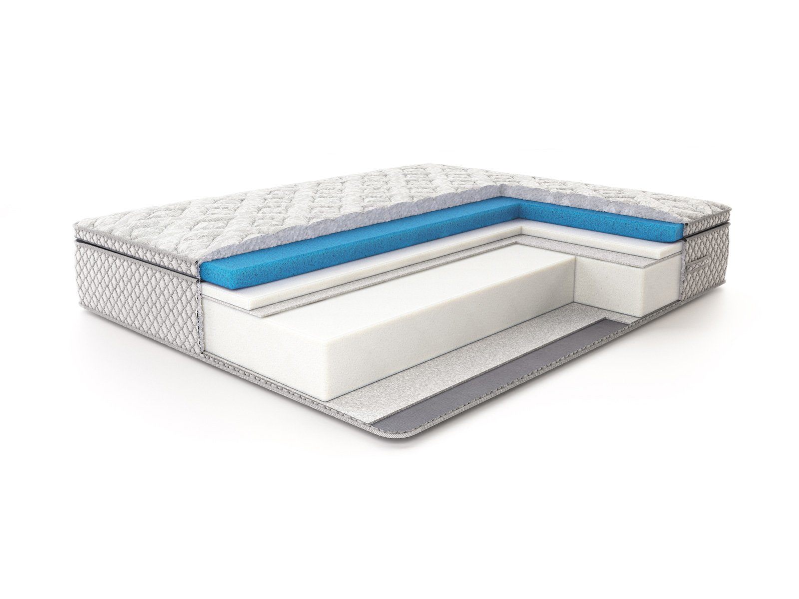 Роскошный рельефный чехол из жаккарда, простёганный по типу «слоёный пирог»: объёмное гипоаллергенное волокно холлкон 300 гр., ППУ 1 см, спанбонд — максимальный первоначальный комфорт. Чехол матраса несъемный.