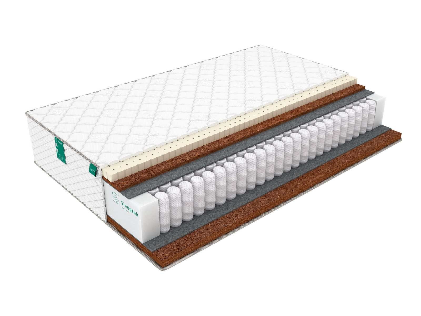 Ортопедический матрас PremierBIG LatexStrong Cocos на основе натуральных наполнителей, с различной жесткостью сторон. Основой модели служит блок независимых пружин S500, высотой 18 см. Увеличенный размер пружинок делает модель не только более высокой, но и более комфортной – пружины с большим числом витков лучше распределяют нагрузку и способствуют быстрому снятию напряжения.
