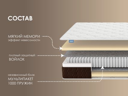 Мягкий и очень комфортный матрас Мега Мемо создан на основе уникального инновационного наполнителя Мемори. Этот материал изначально был произведён для космической промышленности, а уже позже, благодаря своим великолепным свойствам, получил распространение в других областях.