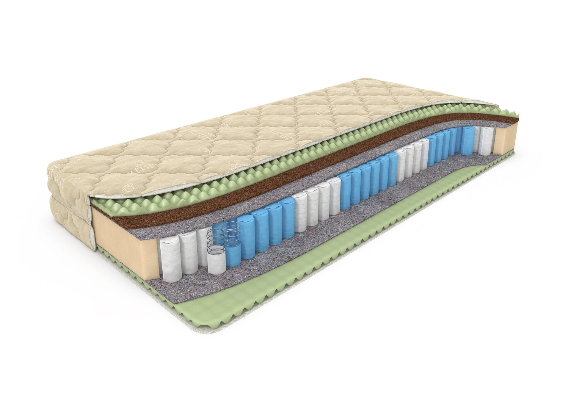Матрас Mix Foam Smart Zone высотой 22 см выдерживает до 140 кг нагрузки на спальное место и обладает разной жесткостью сторон. С каждой стороны в качестве наполнителя используется высокоэластичная рельефная пена Ergo Foam - современный материал, обладающий отличными анатомическими свойствами и оказывающий массажный эффект. С более жесткой стороны дополнительно уложен слой упругой латексированной кокосовой койры. Пятизональный пружинный блок в основе матраса усиливает массажный эффект, равномерно распределяет нагрузку и отлично поддерживает наиболее проблемные области тела во время сна. Дополнительный комфорт матрасу придает мягкий трикотажный чехол. По желанию можно вшить смотровую молнию, либо сделать чехол съемным (за информацией обращайтесь к менеджеру)