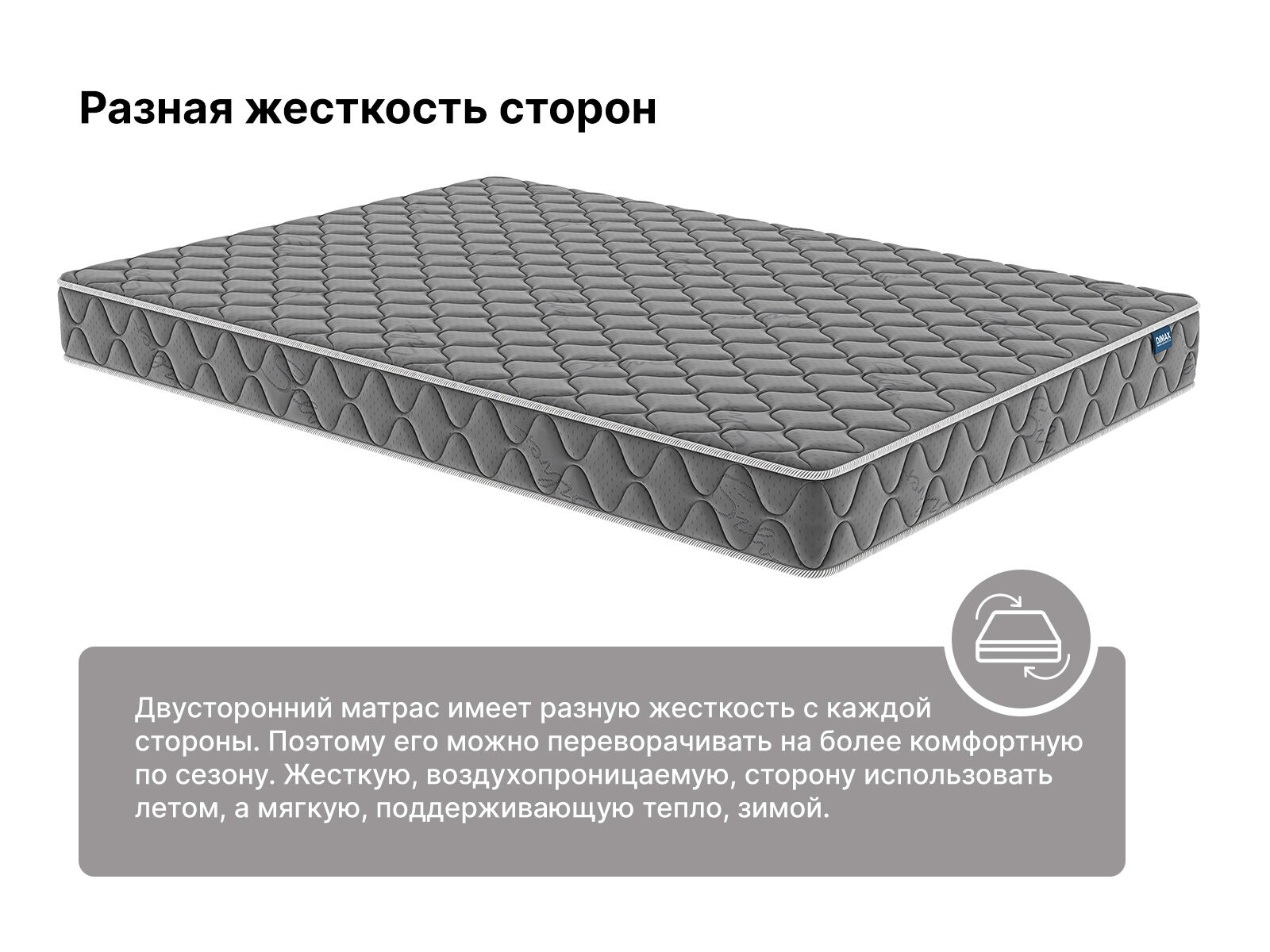 Чехол матраса выполнен из трикота красивого графитого оттенка. Ткань рассчитана на частые нагрузки – не скатывается, не растягивается не теряет форму даже при постоянном контакте.