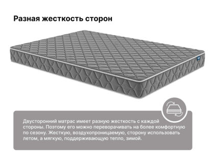 Оптима Комби Фоам графит – компактный беспружинный матрас, который построен на чередовании пены Balance foam и натуральной койры кокоса. Модель получила сразу два уровня жёсткости – средний и выше среднего. Поворачивайте и устанавливайте матрас нужно стороной, чтобы изменить уровень комфортна спального места.