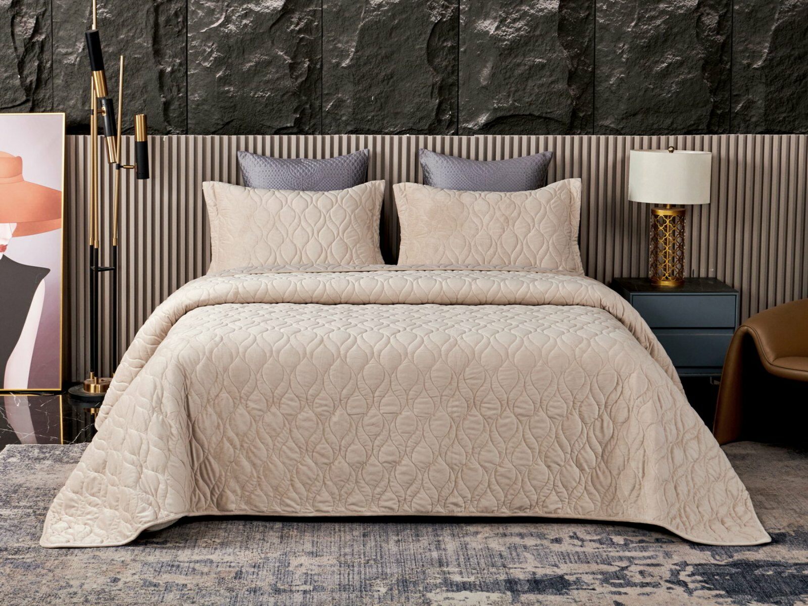 Покрывала представлены в 8 оттенках: пепельная роза, серый, крем, светлый беж, малахит, шоколадный, медный, антрацит