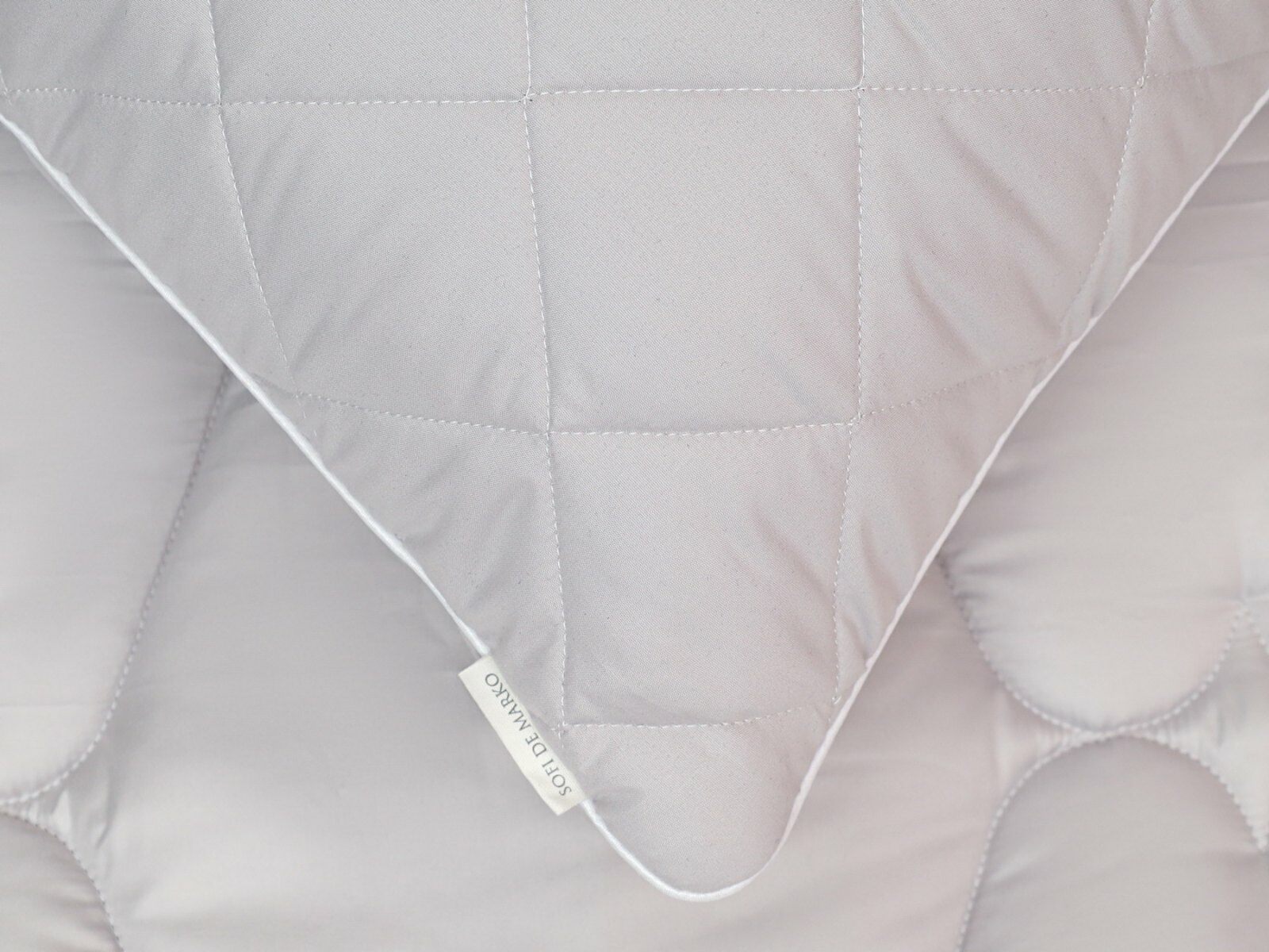 Подушки стеганые с белым атласным кантом по периметру.