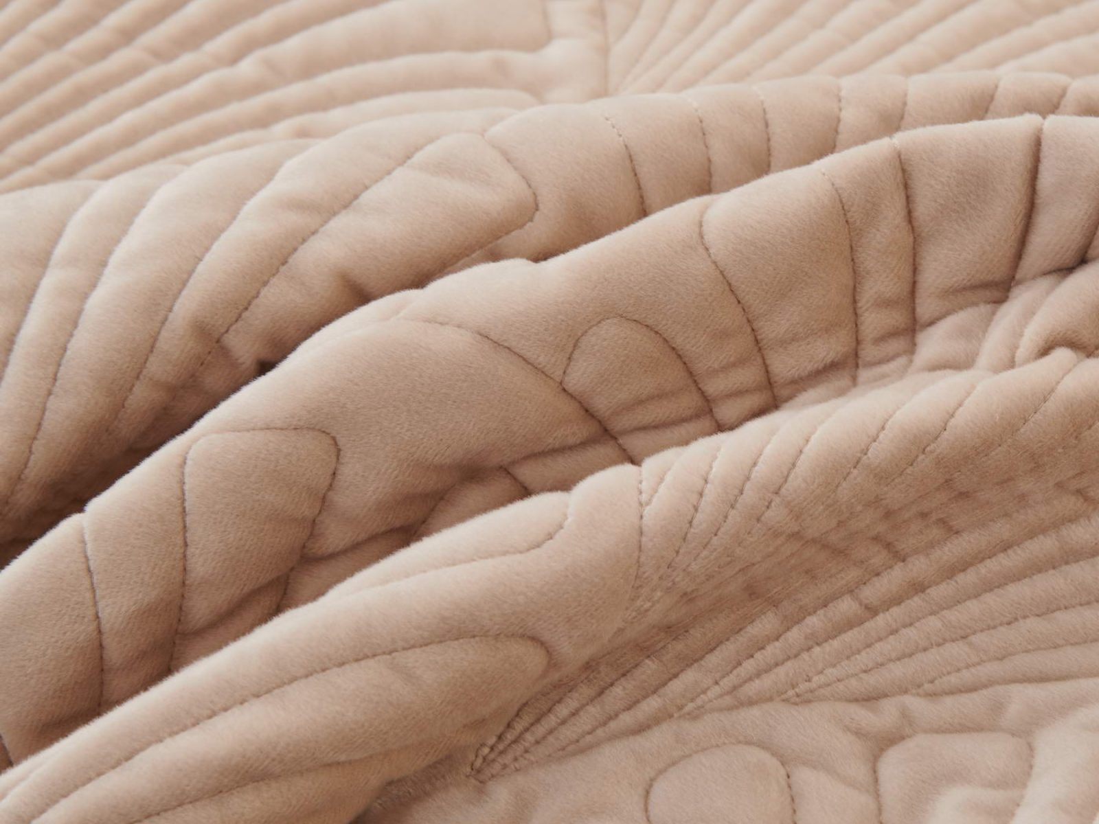 Роскошное велюровое покрывало Ариэль станет изюминкой любого интерьера, ведь оно потрясающе выглядит и приятное на ощупь. Обратите внимание на стежку покрывала – она выполнена в виде ракушек с эффектом 3D. Из-за особого плетения, велюровая ткань покрывала отражает свет и красиво переливается при различном освещении.
