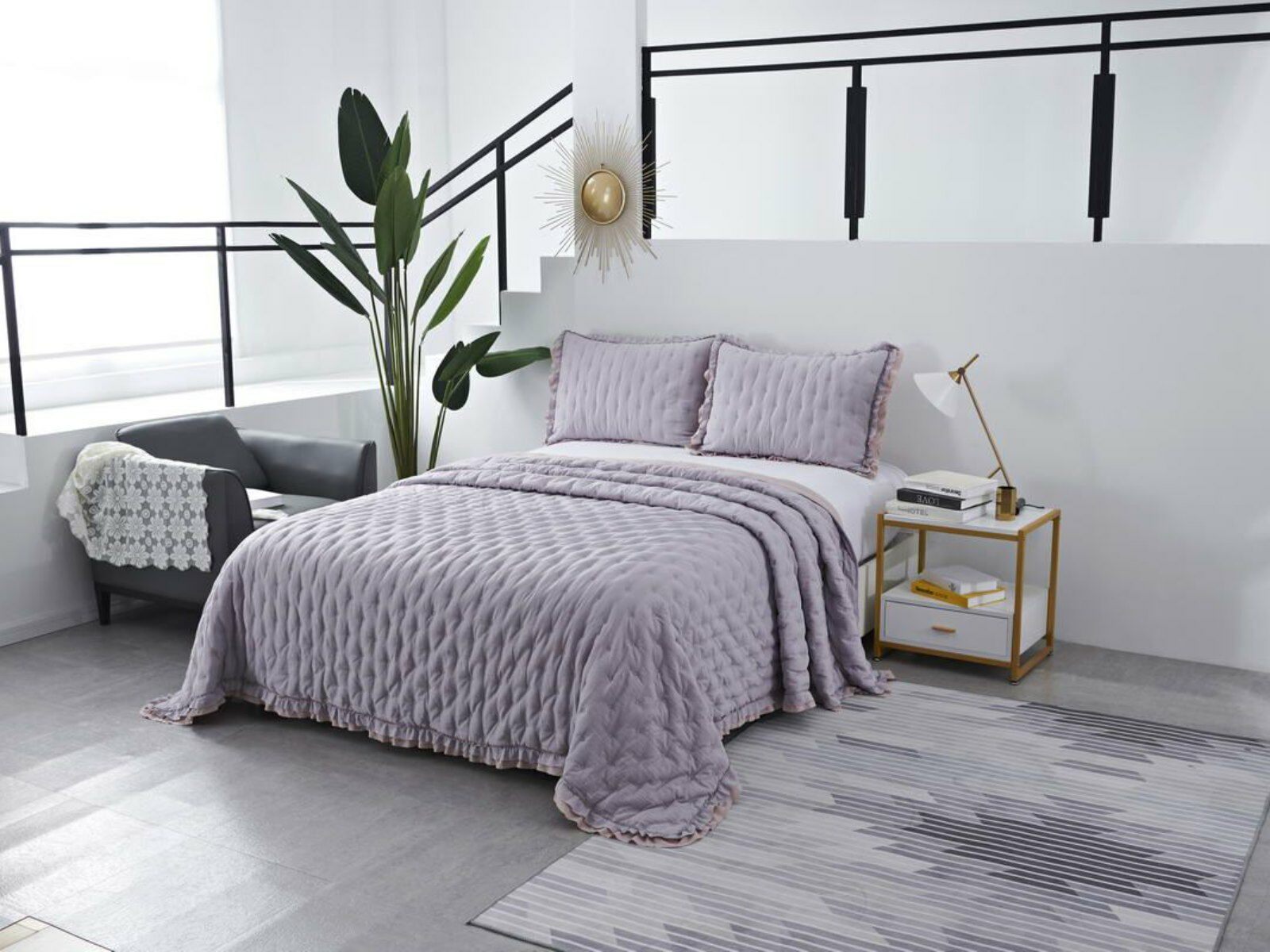 Двусторонние стеганные покрывала Элизабет выполнены из вискозы и хлопка, они легкие и прочные. В комплекте с покрывалом идут две наволочки, вы можете использовать покрывало по назначению, либо в качестве постельного белья. В любом случае, вы будете в восторге от этого комплекта!