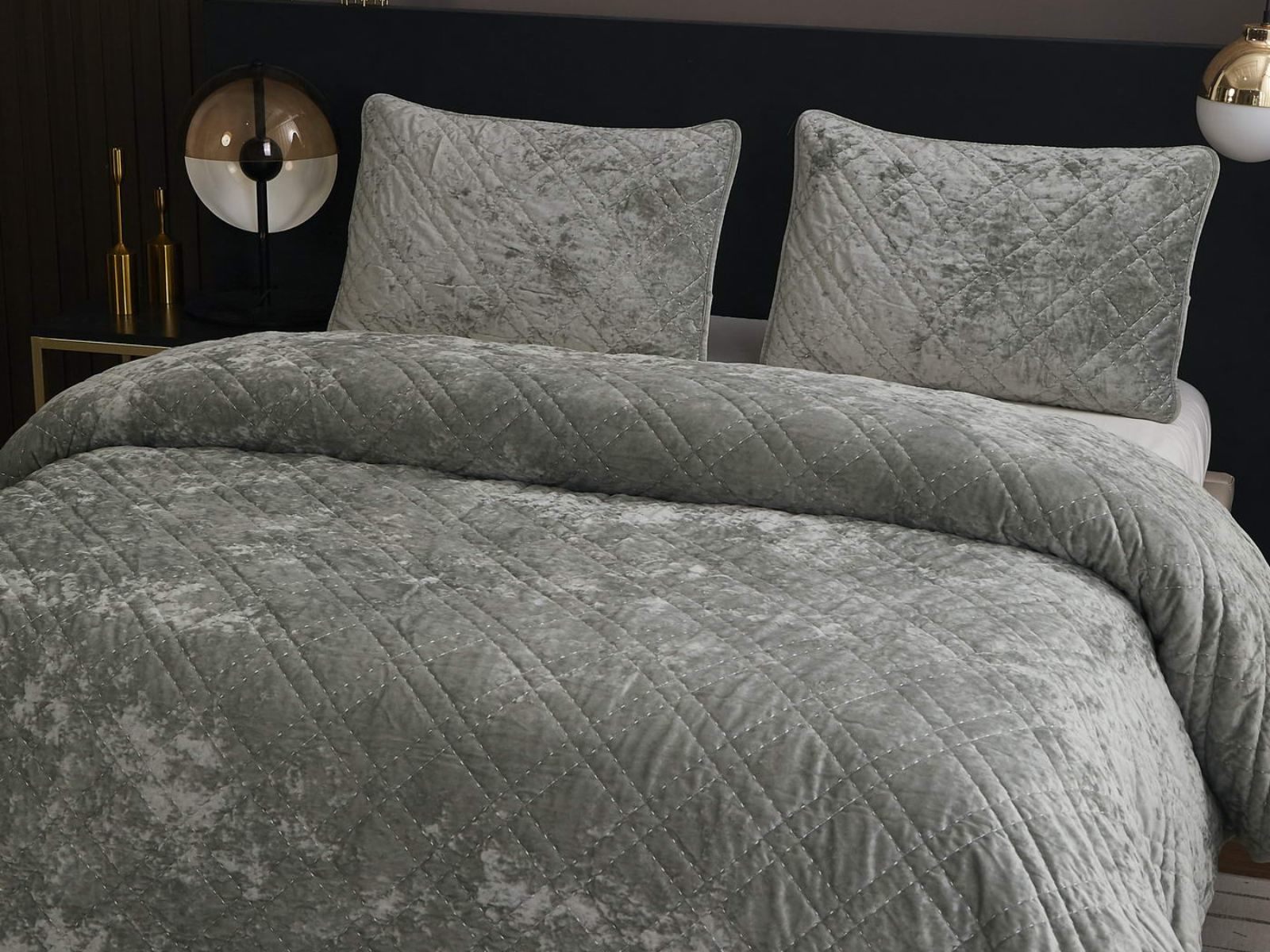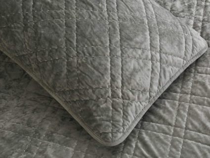 Покрывало Селена выполнено в девяти оттенках: пудра, антрацит, беж, изумруд, капучино, пепел роза, серебро, стоун, терракот. Они подойдут практически для любого интерьера, от классического, до модерна или романтического. Стеганое бархатное покрывало будет необыкновенно смотреться на вашей постели. В комплект входят покрывало и одна либо две наволочки (50х70 см) из аналогичного материала в зависимости от размера.