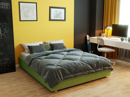 В комплектации с подъемным механизмом кровать имеет вместительный бельевой короб с двумя отделениями.